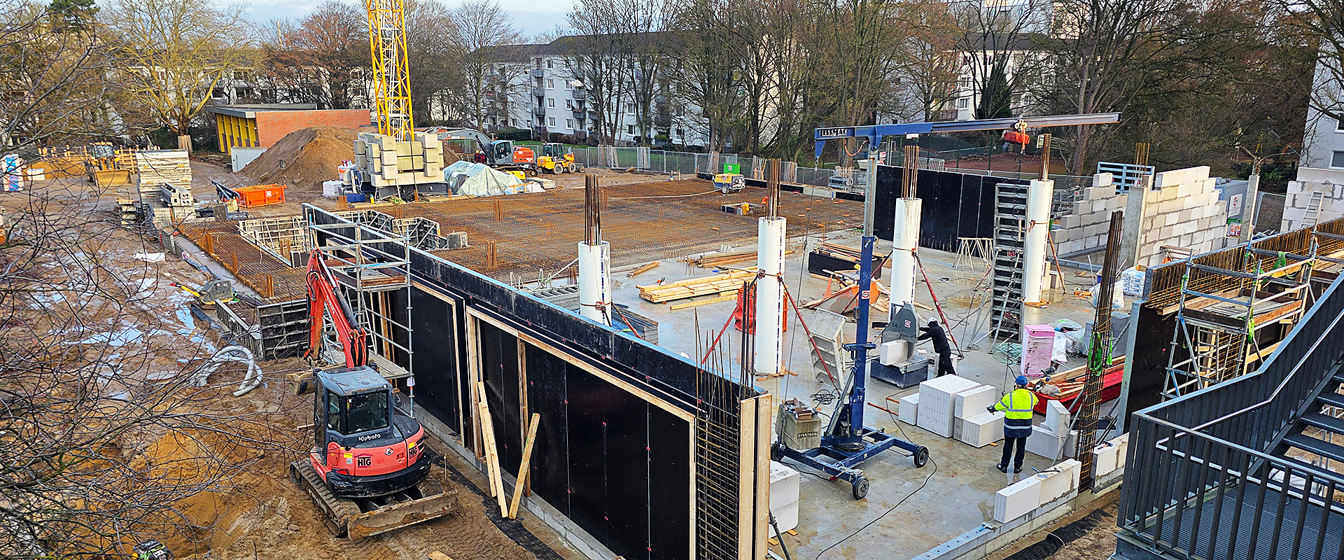 Das erste Fundament und die ersten Wände sind schon sichtbar. Wir freuen uns darüber, dass man jetzt sehen kann, wie „schnell“ es vorangeht.
