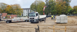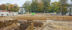 Vor kurzer Zeit wurde die Baustelleneinfahrt erstellt und es wurden die Container für die Bauarbeiter aufgebaut. Auf der Baustelle sieht man inzwischen täglich, wie gut es voran geht. Wenn man dem Halteverbotsschild glauben darf, können wir im Mai 2027 in den Neubau einziehen. 🙂